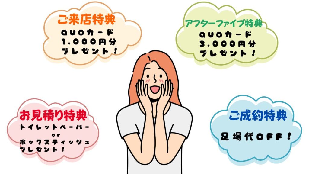 今回のキャンペーン期間中にご相談・ご契約いただいたお客様には、以下の4つの特別特典をご用意しています。4つの特典についてそれぞれご紹介させていただきます。