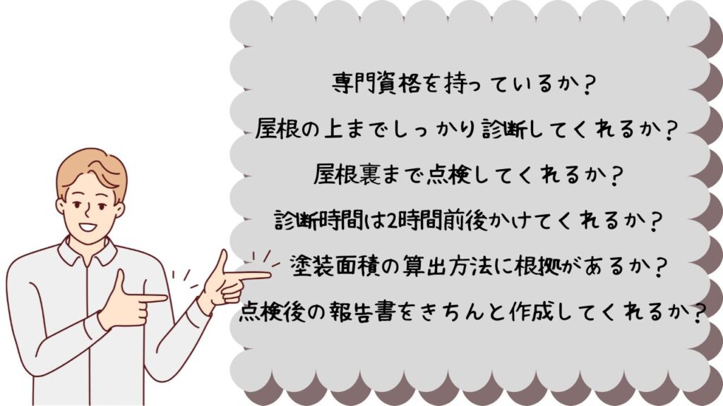 点検が終わったら、写真や動画付きの詳細な報告書を提出してくれる業者を選びましょう。口頭だけで「ここが傷んでいます」と説明する業者ではお客様が状況を正確に把握することが難しく、後々のトラブルにつながる可能性があります。