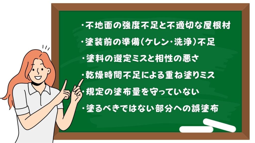 施工不良による剥がれの6つの原因についてそれぞれ詳しくご紹介させていただきます。