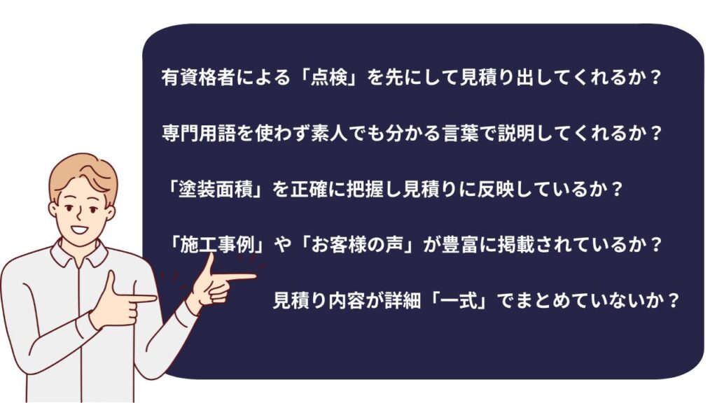 優良業者を見抜くための5つのポイントについてそれぞれ詳しくご紹介させていただきます。