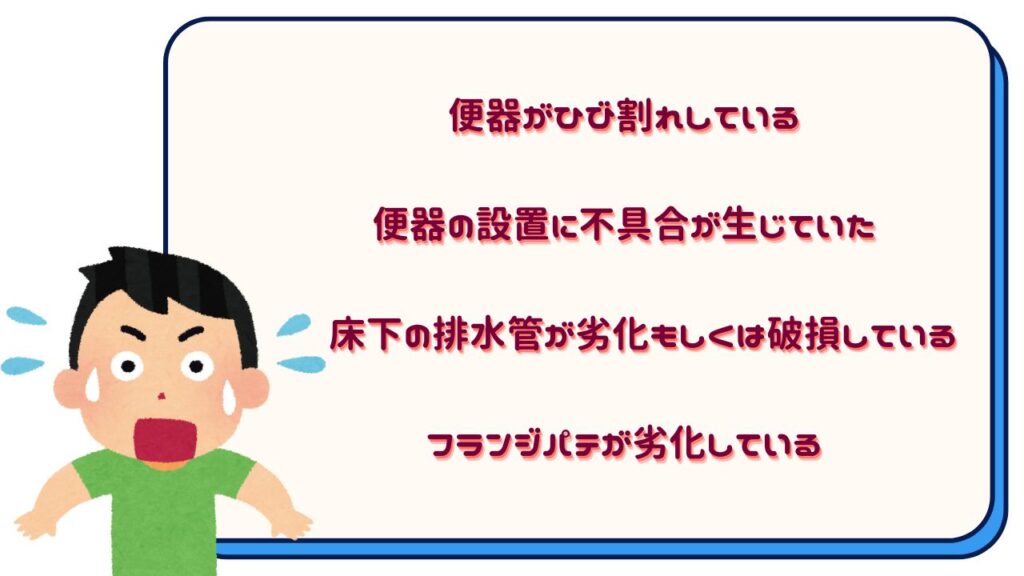・フランジパテ(便器と排水管の間を塞ぐ部品)が劣化している