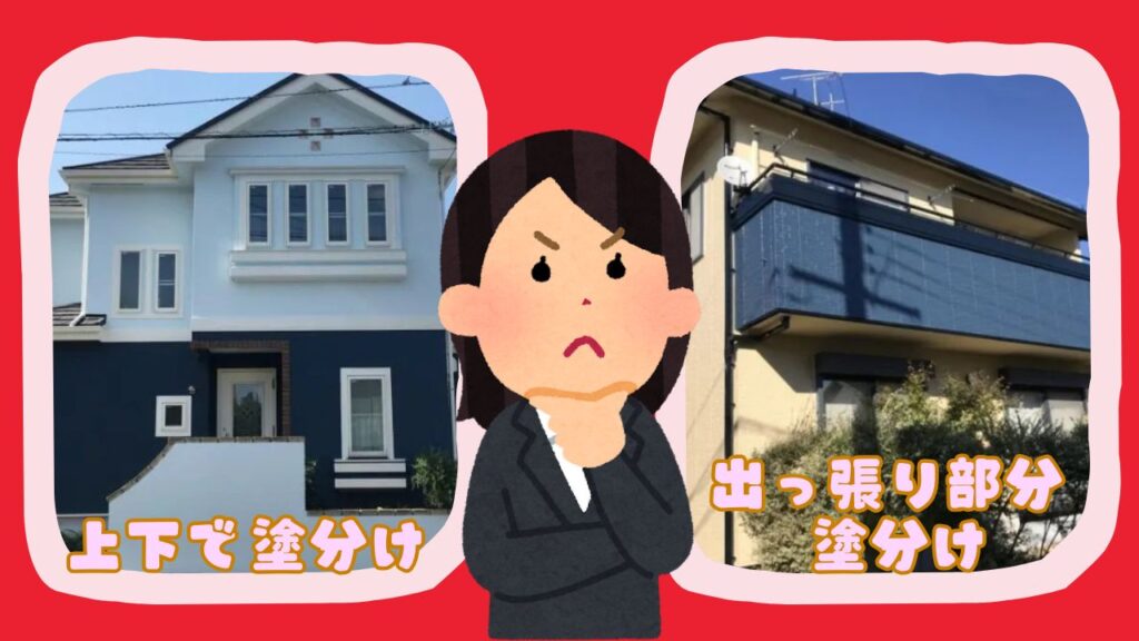 塗装の時期を間違ってしまうとそれぞれの塗料の性能が十分に発揮されず、工事期間が長引いてしまう可能性があります。それと同様に、ツートンカラーの色の組み合わせや色を分ける位置(塗装配置)を間違ってしまうと、「ちぐはぐな印象になってしまった」という残念な結果になりかねません。