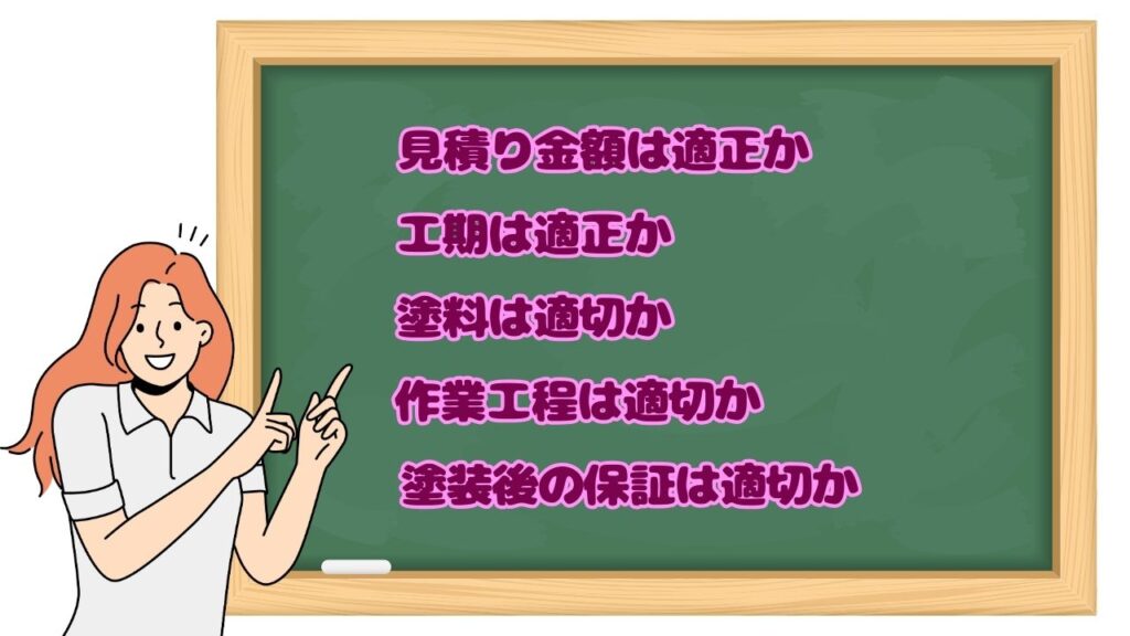 チェックポイントとして提案された塗料の種類(シリコン、フッ素、無機など)が、ご自宅の外壁材や立地条件(鹿児島市の紫外線や火山灰など)に適しているかどうかを確認します。アドバイスとして特に、提案された塗料のメーカー名や製品名、耐用年数が明確に記載されているか確認し、本当にその塗料が必要な性能を持っているのかを質問しましょう。