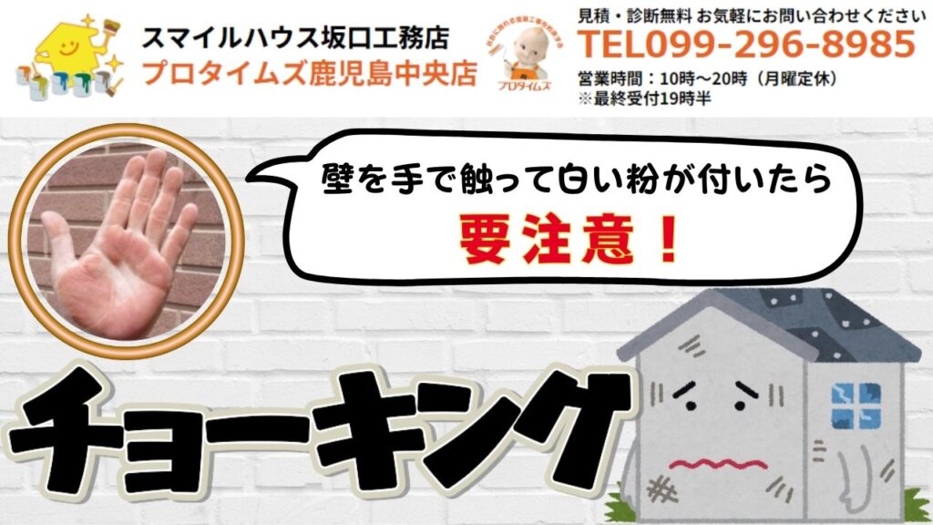 今回のお役立ちコラムでは、白い粉の正体!チョーキング現象とチョーキング現象が発生する2つの主な原因と鹿児島市の家はチョーキングしやすい?地域特性との関係とチョーキングを放置するとどうなる?3つの深刻な危険とチョーキング現象のセルフチェックと塗り替えの目安について詳しく解説します。