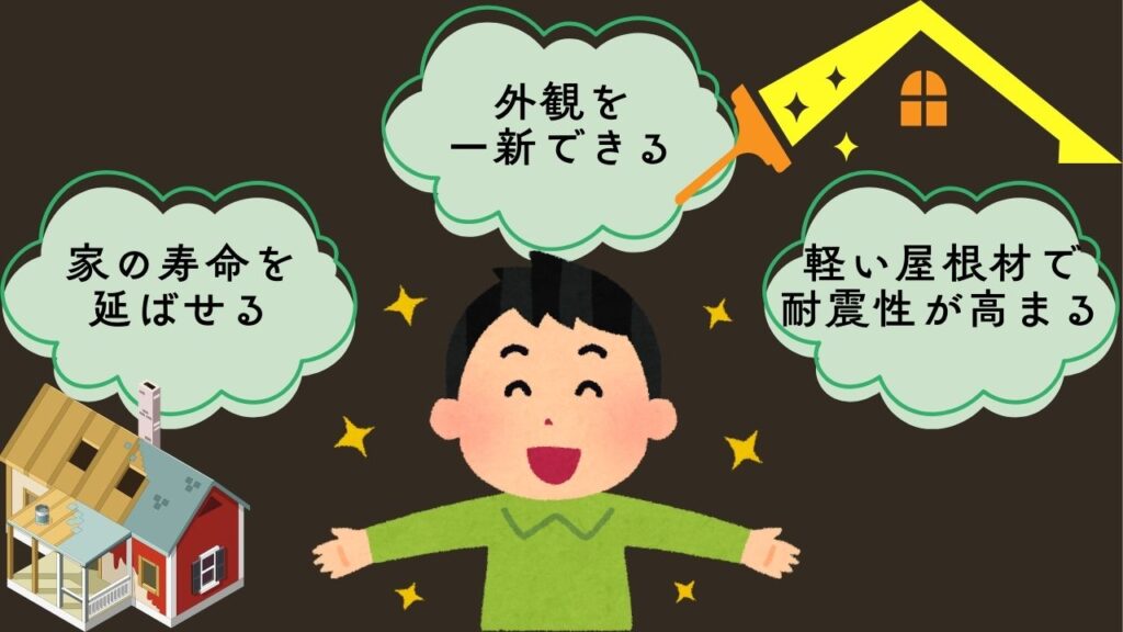 瓦屋根から金属屋根や軽量スレートに替えることで屋根の重量が軽くなります。家の重心が下方に移動し安定するため、耐震性の向上につながります。