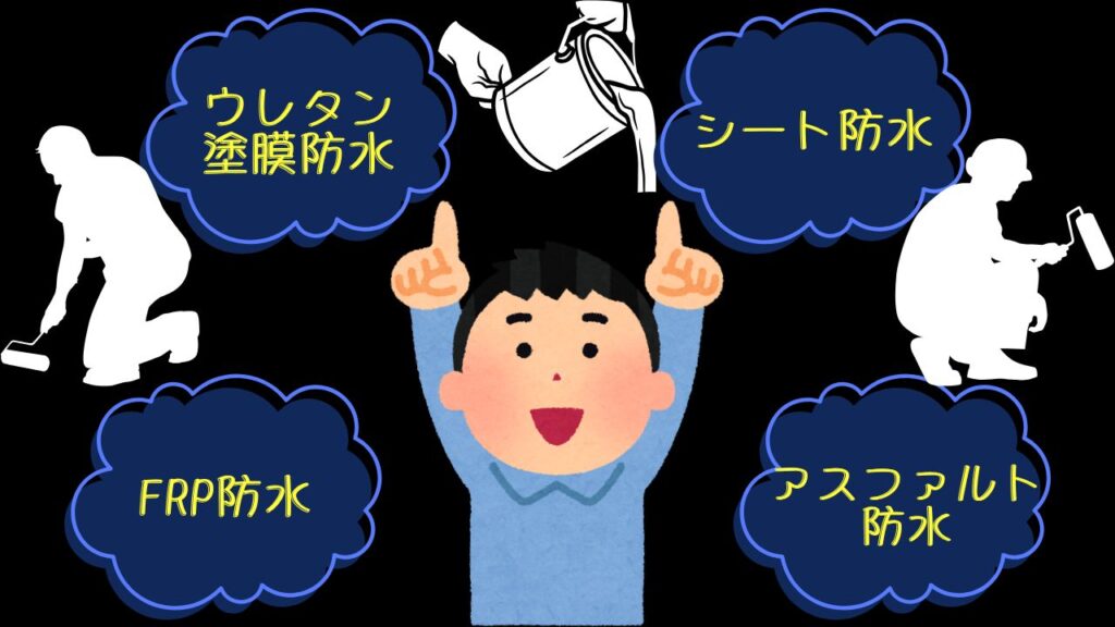 アパートの屋上やベランダは、使われている「素材」「形状」「予算」に合わせて最適な工法を選ぶことが重要です。4つの防水工法についてそれぞれ詳しくご紹介させていただきます。