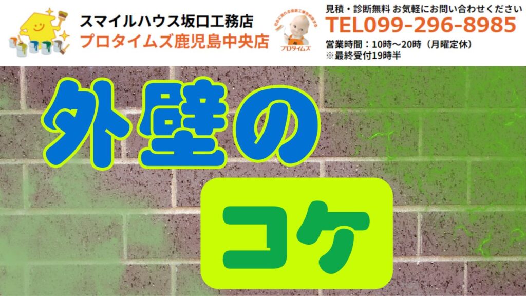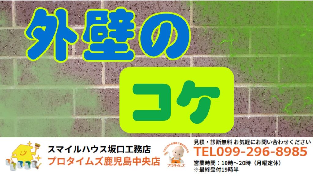 今回のお役立ちコラムでは、外壁の「緑色の汚れ」の正体とはとなぜ外壁にコケが生えるの?鹿児島市ならではの原因と放置は厳禁!コケが住まいに及ぼす恐ろしいリスクと自分でできる!外壁のコケ取り・お掃除ガイドと自分で掃除 vs プロの洗浄(スマイルハウス坂口工務店)とここだけは注意!外壁を傷める「NGなお掃除方法」と頑固な汚れはプロへ!スマイルハウス坂口工務店の「外壁洗浄サービス」とコケを再発させない!外壁をキレイに保つ予防対策について詳しく解説します。