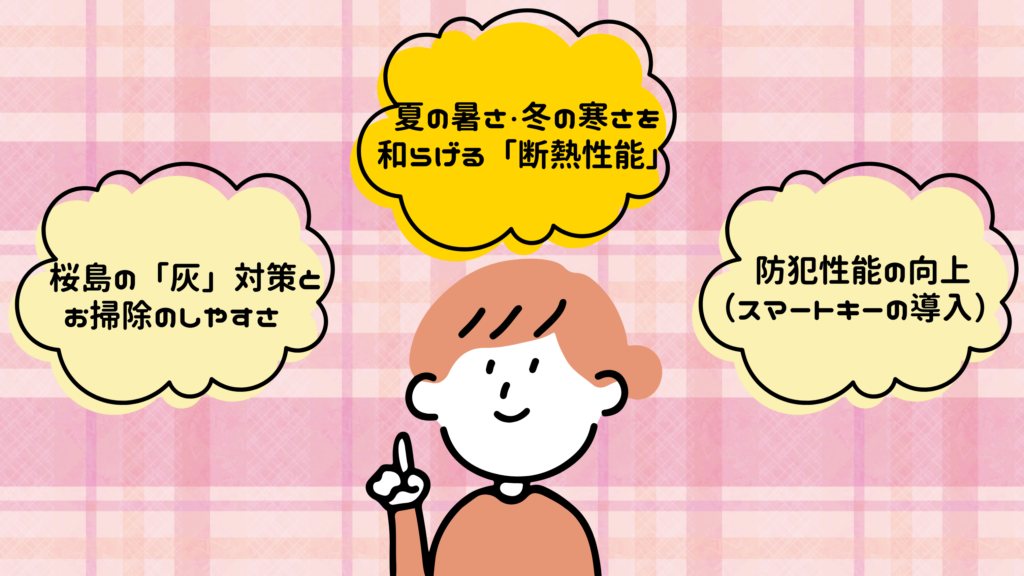 鹿児島市でお家をリフォームする場合、他県とは違う「鹿児島ならでは」の視点がとっても大切です。3つのポイントについてそれぞれ詳しくご紹介させていただきます。