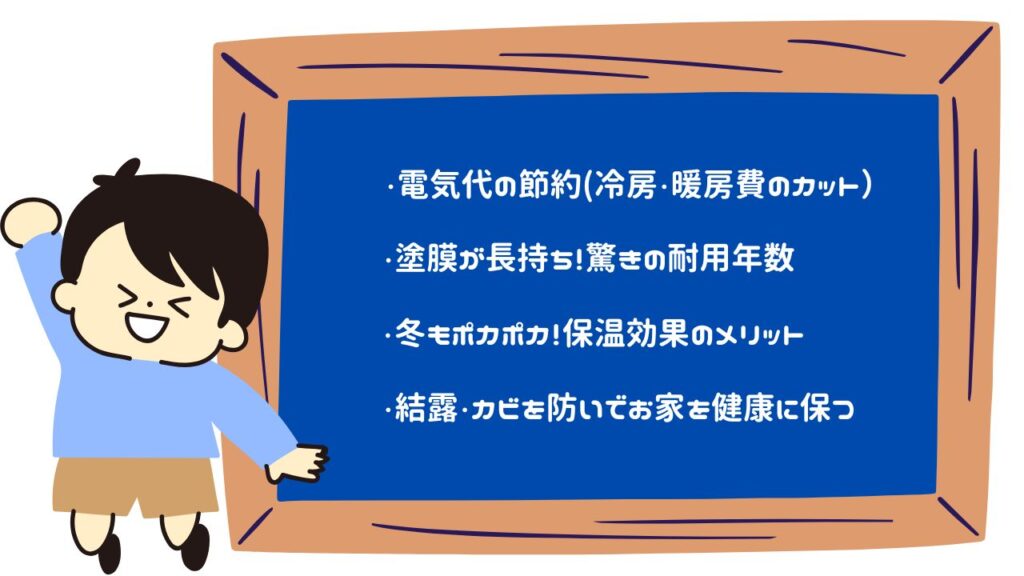 「ちょっと費用が高くても、断熱塗料がいいかも!」と思える、具体的な4つのメリットについてそれぞれ詳しくご紹介させていただきます。