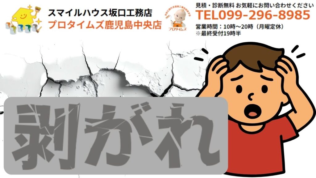 今回のお役立ちコラムではなぜ剥がれる?外壁の剥がれを引き起こす2つの大きな原因と外壁の剥がれ・劣化の特徴と修復方法とDIYで外壁補修!自分で直すための手順と準備するものとDIY vs 専門業者!メリット・デメリット徹底比較とこれが見えたら危険信号!プロに依頼すべきケースとはと鹿児島市で外壁塗装・補修をするなら?工期の目安と季節について詳しく解説します。