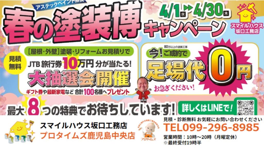 【鹿児島市】築10年は外壁塗装のサイン?春の塗装博キャンペーン