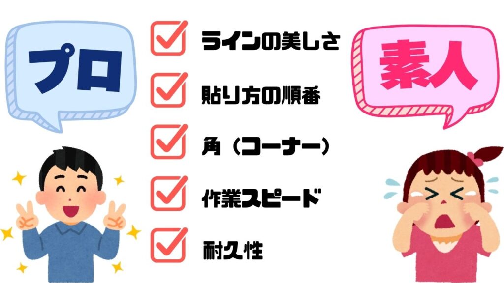 養生期間が長すぎると、テープの糊がサッシにこびりついて取れなくなることがあります。適切なスピードで工事を終わらせる技術が求められます。