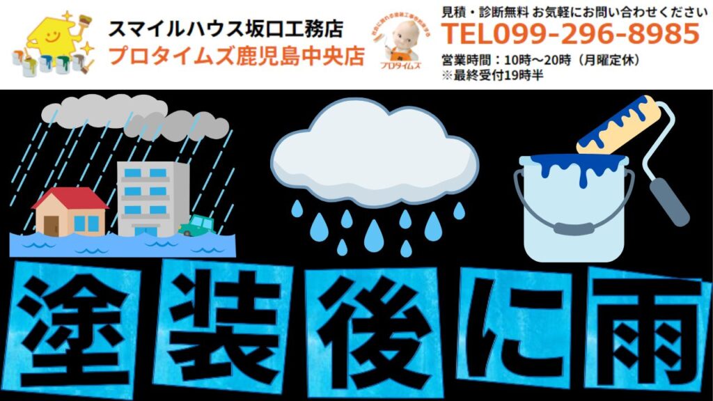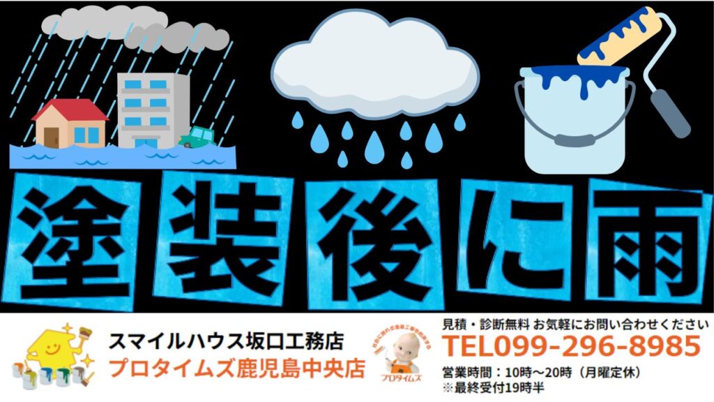 今回のお役立ちコラムでは、屋根塗装後に雨が降っても大丈夫な「2つの条件」と乾燥前に雨が降ると起こる3つの深刻なリスクともし乾燥前に雨が降ったら?「塗り直し」の判断基準と屋根塗装をしてはいけない「NGな気象条件」と雨の日でも安心!信頼できる塗装業者を見極める4つの質問と鹿児島市特有!火山灰と雨が塗装に与える影響について詳しく解説します。