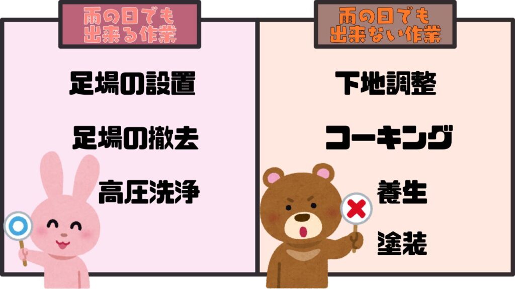 これは、職人さんが濡れて風邪を引いてしまうから……という理由だけではありません。一番の理由は、「塗料の品質が保てなくなるから」です。