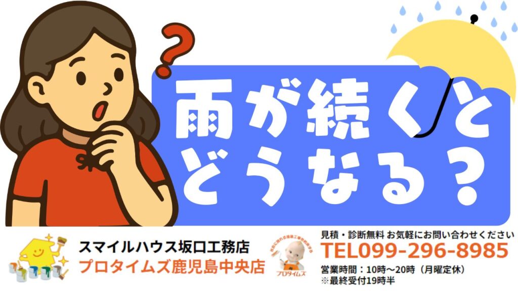 【鹿児島市】外壁塗装中に雨が続くとどうなる?鹿児島市のプロが教える工期への影響と品質を守る対策