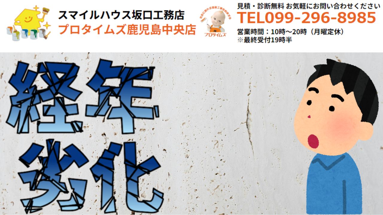 【鹿児島市】築10年を超えたら要注意!?外壁の経年劣化を見極める8つのサインと放置してはいけない4つの理由 2025年11月04日(火) 鹿児島市で屋根塗装・外壁塗装、屋根葺き替え工事でお悩みの方は スマイルハウス坂口工務店・プロタイムズ鹿児島中央店まで! みなさんこんにちは!事務の拵です! 「家を建ててから約10年経っているけど、塗装・・・