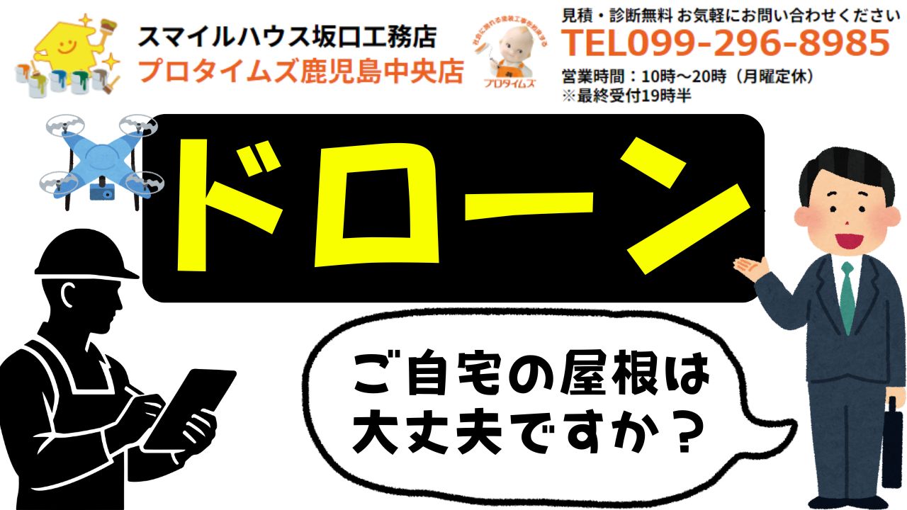 【鹿児島市】屋根点検「ご自宅の屋根は大丈夫ですか?」ドローン点検の5つの強みと雨漏り対策 2025年12月11日(木) 鹿児島市で屋根塗装・外壁塗装、屋根葺き替え工事でお悩みの方は スマイルハウス坂口工務店・プロタイムズ鹿児島中央店まで! みなさんこんにちは!事務の拵です! 「家を建ててから約10年経っているけど、塗装・・・