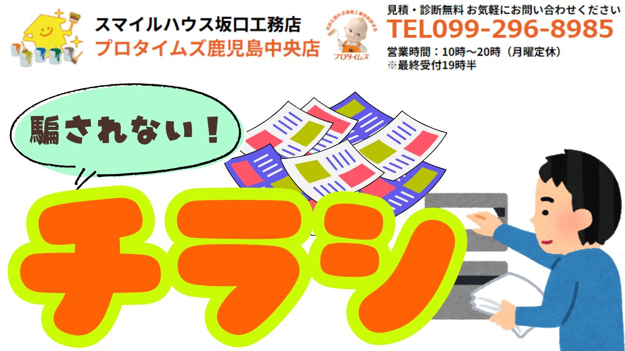 【鹿児島市】外壁塗装のチラシで騙されない!優良業者を見抜く「5つのチェックポイント」と失敗しない相見積もりの極意 2025年10月10日(金) 鹿児島市で屋根塗装・外壁塗装、屋根葺き替え工事でお悩みの方は スマイルハウス坂口工務店・プロタイムズ鹿児島中央店まで! みなさんこんにちは!事務の拵です! 「ポストに外壁塗装のチラシがたくさん入ってい・・・